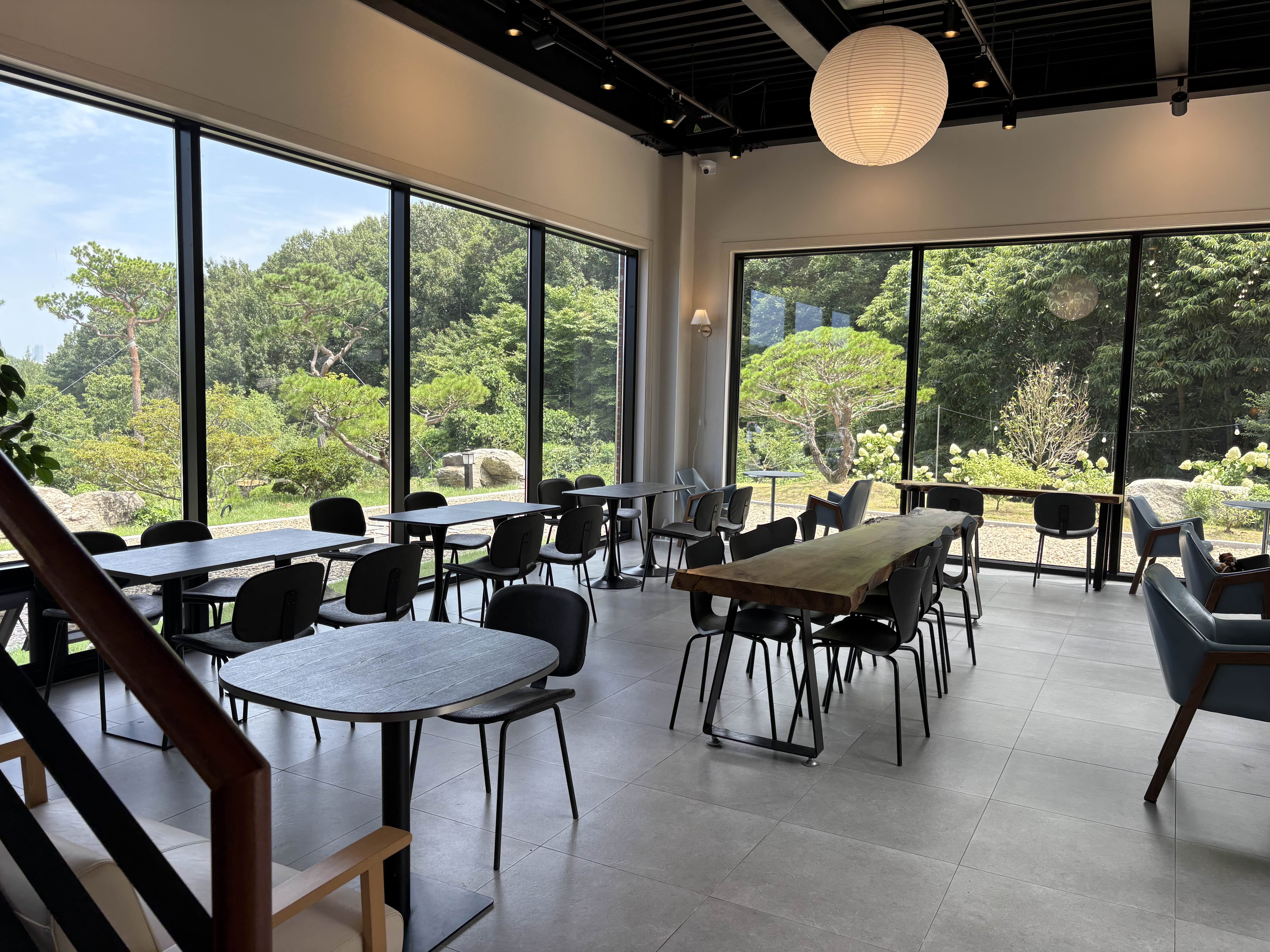 낮에 방문했지만, 창밖 풍경과 은은한 조명을 보니 밤에 오면 또 다른 매력이 있을 것 같더라고요. 낮에는 숲 속 힐링 공간, 밤에는 감성적인 무드로 즐길 수 있는 공간이라 다양한 시간대에 방문해도 좋을 것 같아요.